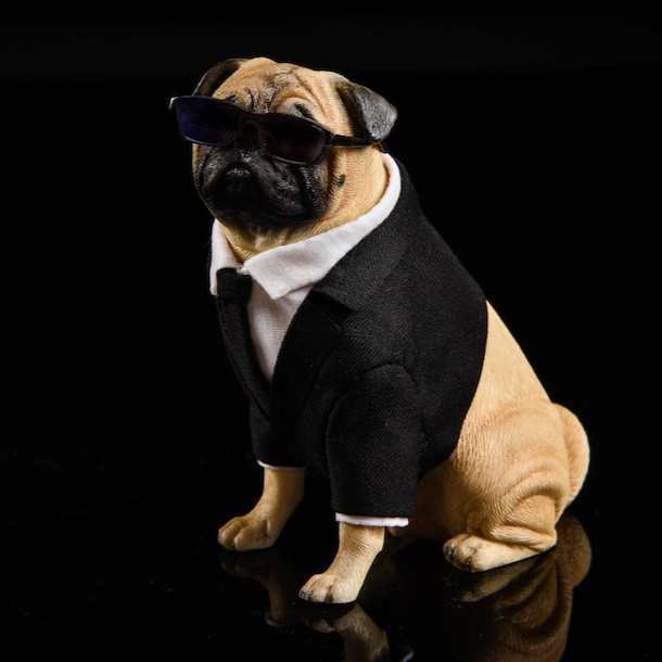 サングラスと背広でビシッときめたクールなパグさんのフィギュアです。