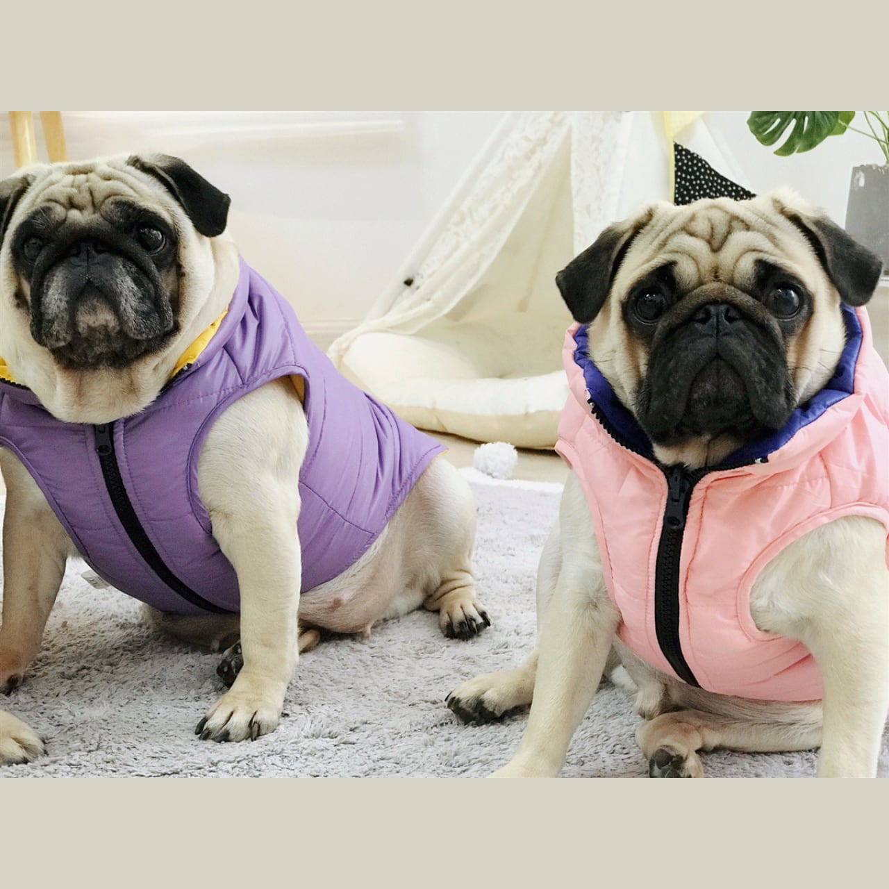 【商品詳細】 気分に合わせてカラーを変えられる。リバーシブルタイプの暖かベストです。 【サイズ】 S 胸囲: 38-42cm 背丈: 28cm M 胸囲: 43-48cm 背丈: 30cm L 胸囲: 50-58cm 背丈: 33cm XL 胸囲: 56-64cm 背丈: 36cm 2XL 胸囲: 64-69cm 背丈: 39cm ※海外商品につき、多少誤差がある場合がございます。 【お届けについて】 こちらの商品は海外店舗より直接発送となる為、 ご入金から3~4週間前後でお届け致します。 ◼️注意事項 ・タイミングによっては 商品在庫切れにより 注文キャンセルとさせていただく恐れもございますので、予めご了承くださいませ。 ・こちらは輸入品となります。日本製とは検品基準が異なる為、 新品未使用品でもごくわずかな汚れや ほつれがある場合もございます。 ・仕入れ工場を変えることがあるため、記載サイズと若干異なる場合がございます。 ・商品の色味は、お手持ちのスマートフォンの画面によって実物と若干異なる場合がございます。 ・イメージ違いやサイズ交換等、お客さまご都合による交換、返品は対応出来かねます。 ———————————— ご購入前にこちらをお読みください →https://www.pug-shower.com/about ————————————