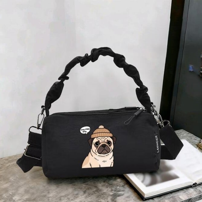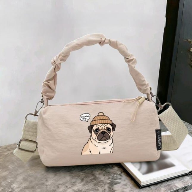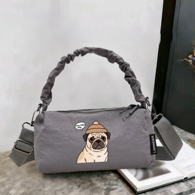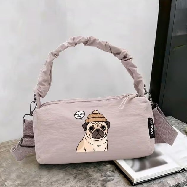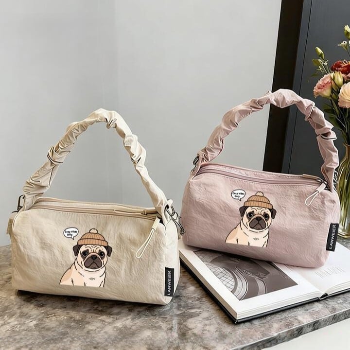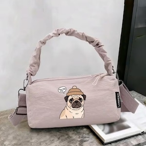 パグさんプリントがキュートなショルダーバッグです。