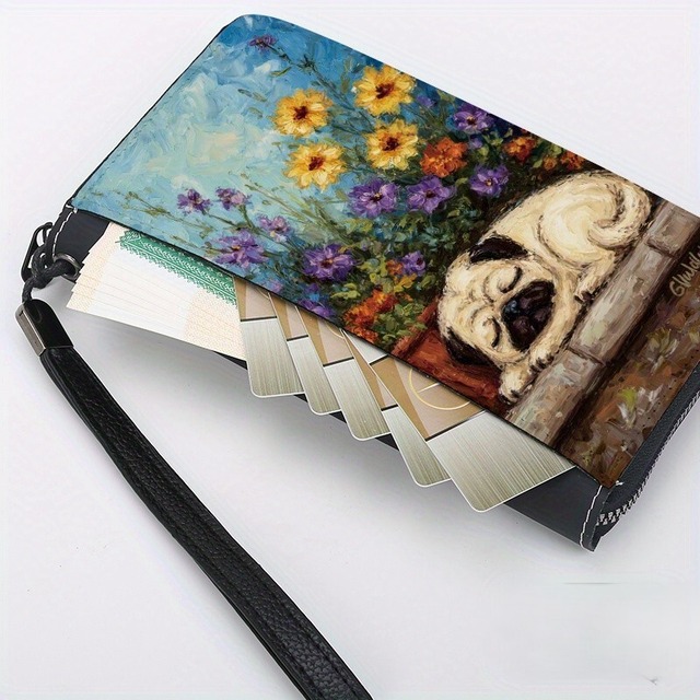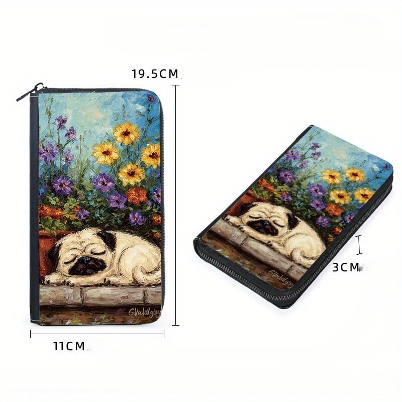 すやすやすや…。花壇でくつろぐパグさんが可愛い財布です。
