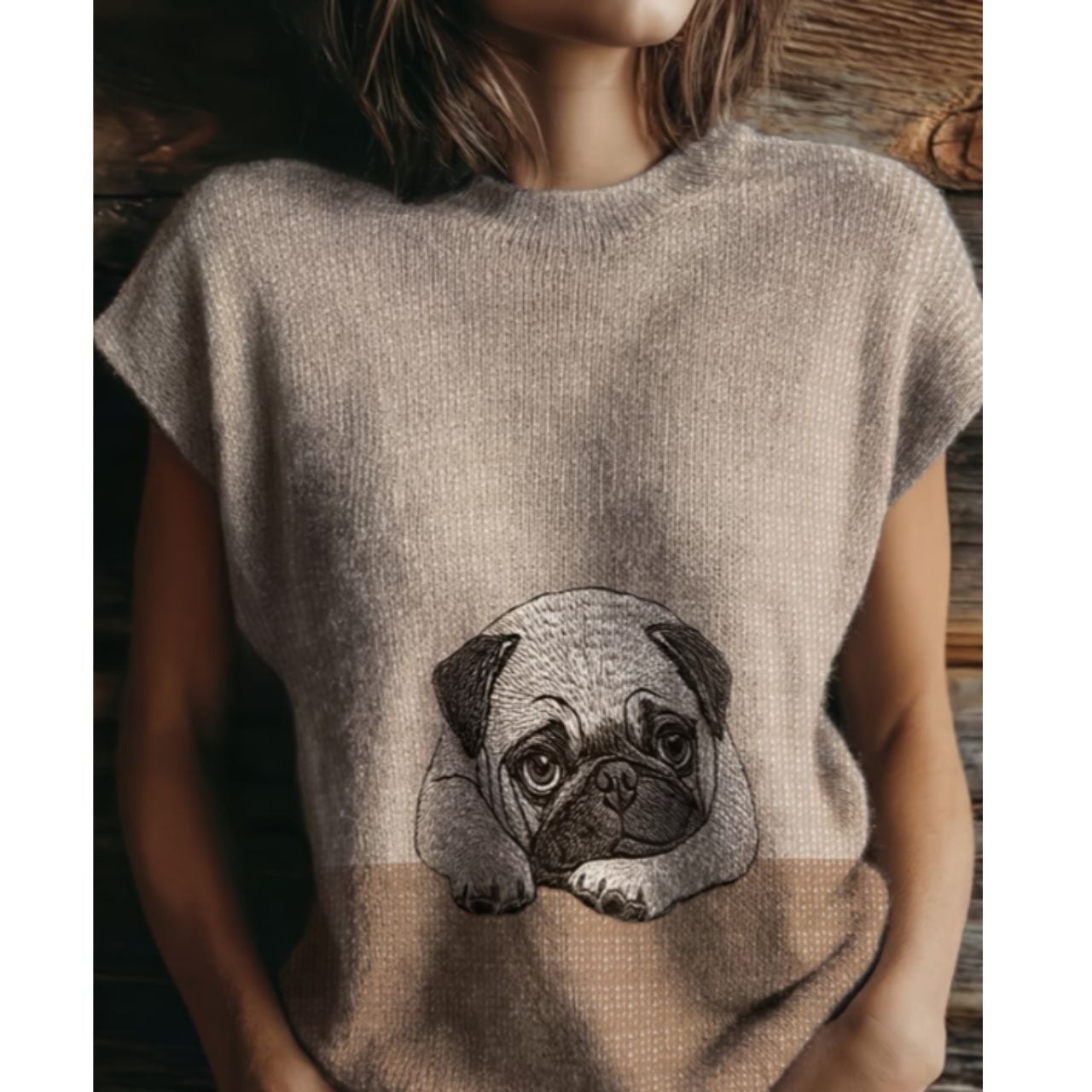 パグさん部分は、プリントです。編み込みやパッチワークではありません。