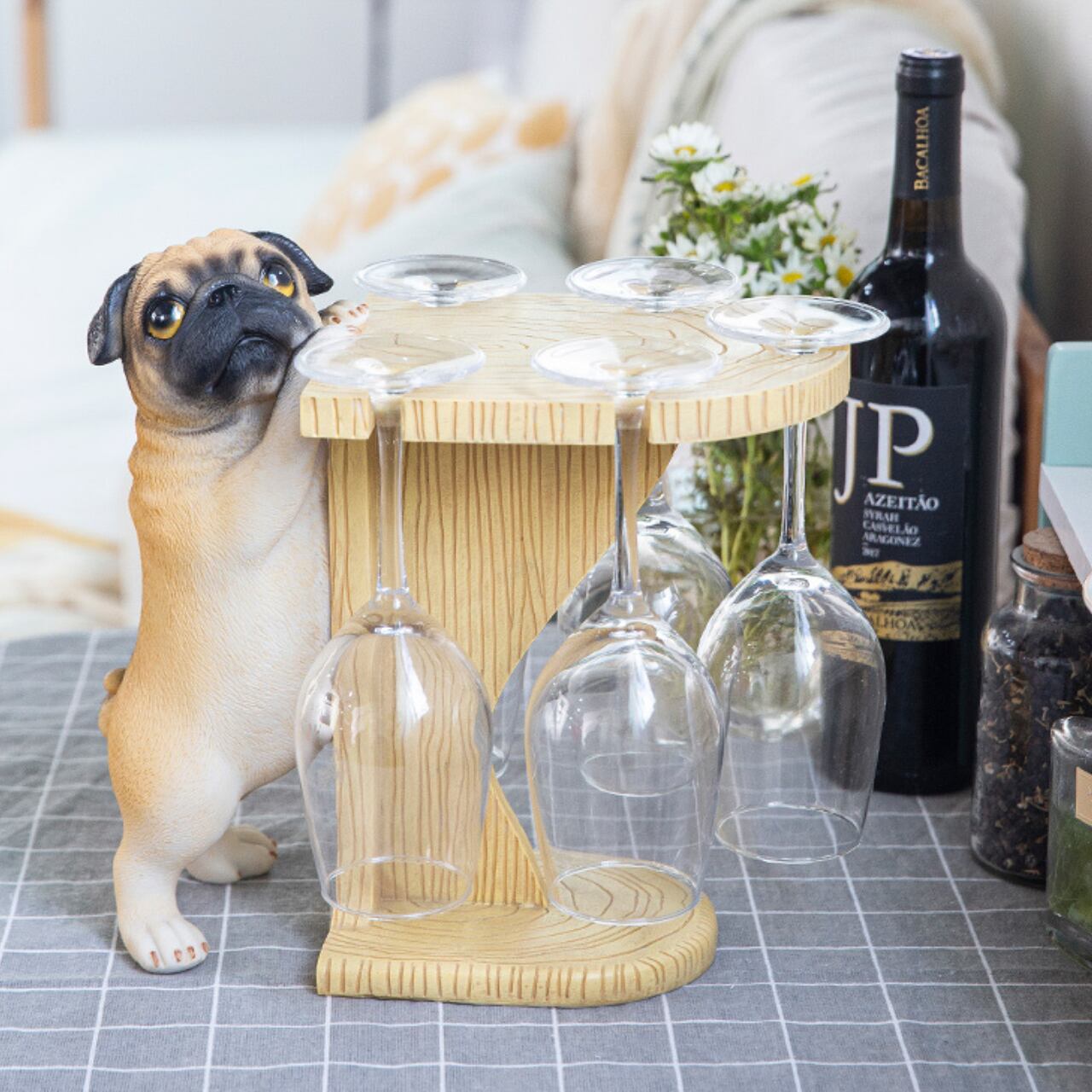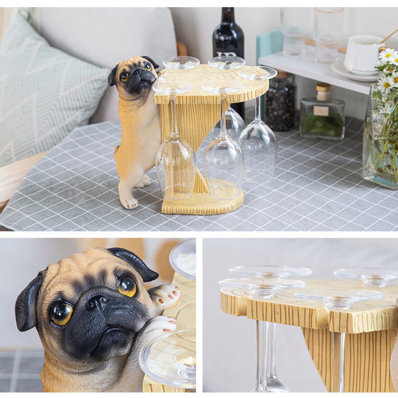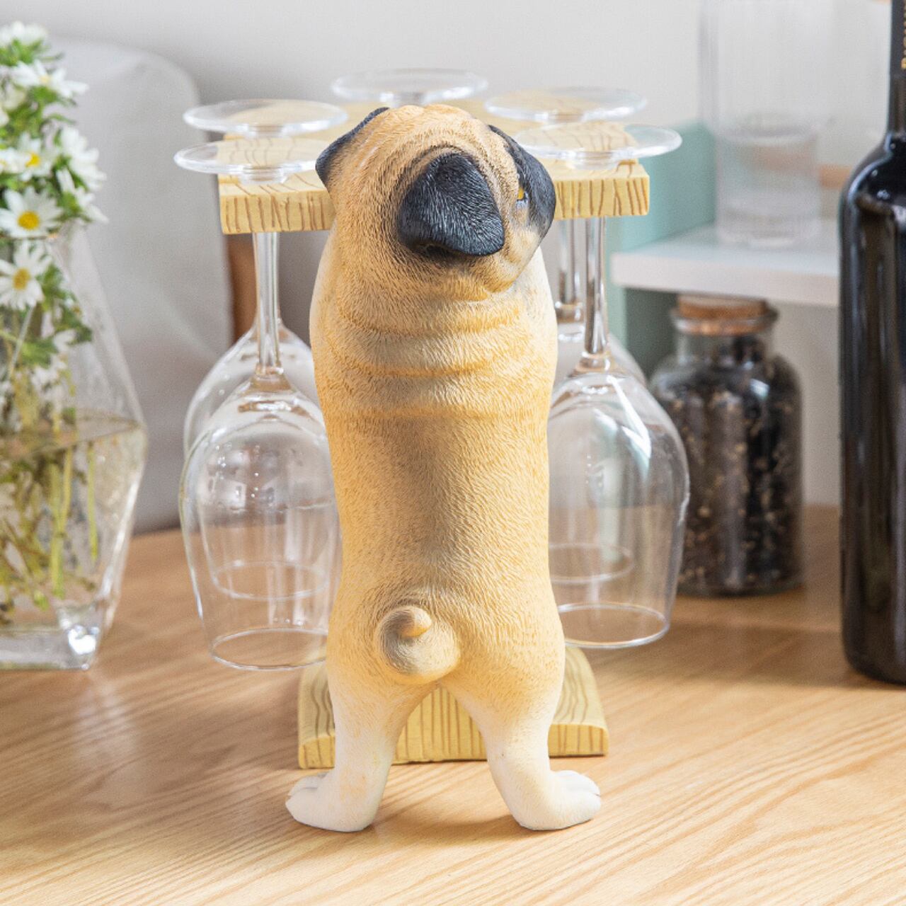 グラスが5脚掛けられる、パグちゃんのグラスホルダーです。