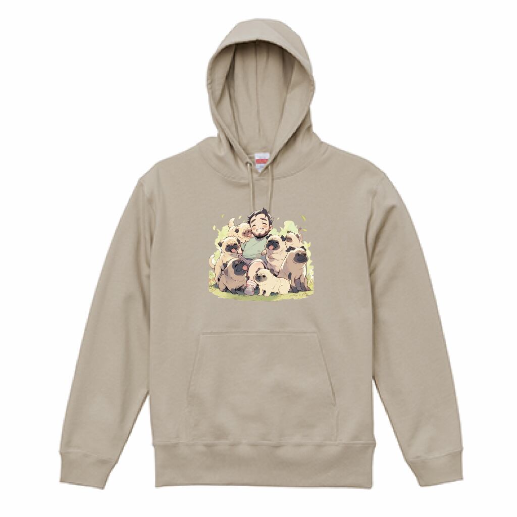 【商品詳細】 パグさんに囲まれて天国! 肌触りが良いパイル裏地のスウェット生地が快適なパーカーです。 ※画像は、イメージ画像です。 【素材】 綿100% 10oz(オンス) 【サイズ】 S 胸囲:108cm 肩幅:44cm 袖丈:56cm 着丈:63cm M 胸囲:114cm 肩幅:48cm 袖丈:60cm 着丈:67cm L 胸囲:120cm 肩幅:52cm 袖丈:61cm 着丈:71cm XL 胸囲:126cm 肩幅:55cm 袖丈:62cm 着丈:76cm 2XL 胸囲:132cm 肩幅:58cm 袖丈:63cm 着丈:81cm 【お届けについて】 こちらの商品は、受注生産の為、 ご入金から約3週間程でお届け致します。 ◼️注意事項 ・タイミングによっては 商品在庫切れにより 注文キャンセルとさせていただく恐れもございますので、予めご了承くださいませ。 ・仕入れ工場を変えることがあるため、記載サイズと若干異なる場合がございます。 ・商品の色味は、お手持ちのスマートフォンの画面によって実物と若干異なる場合がございます。 ・イメージ違いやサイズ交換等、お客さまご都合による交換、返品は対応出来かねます。 ———————————— ご購入前にこちらをお読みください →https://mochitto7.base.shop/about ————————————