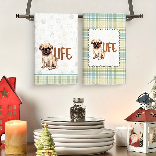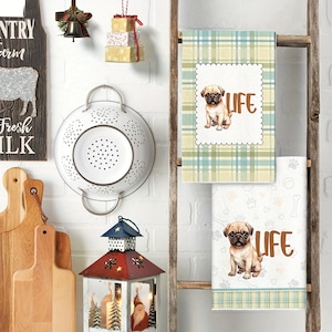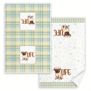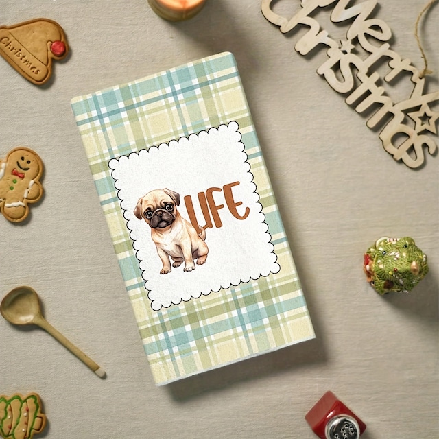 キュートなパグさんとチェック柄が素敵なタオルです。
