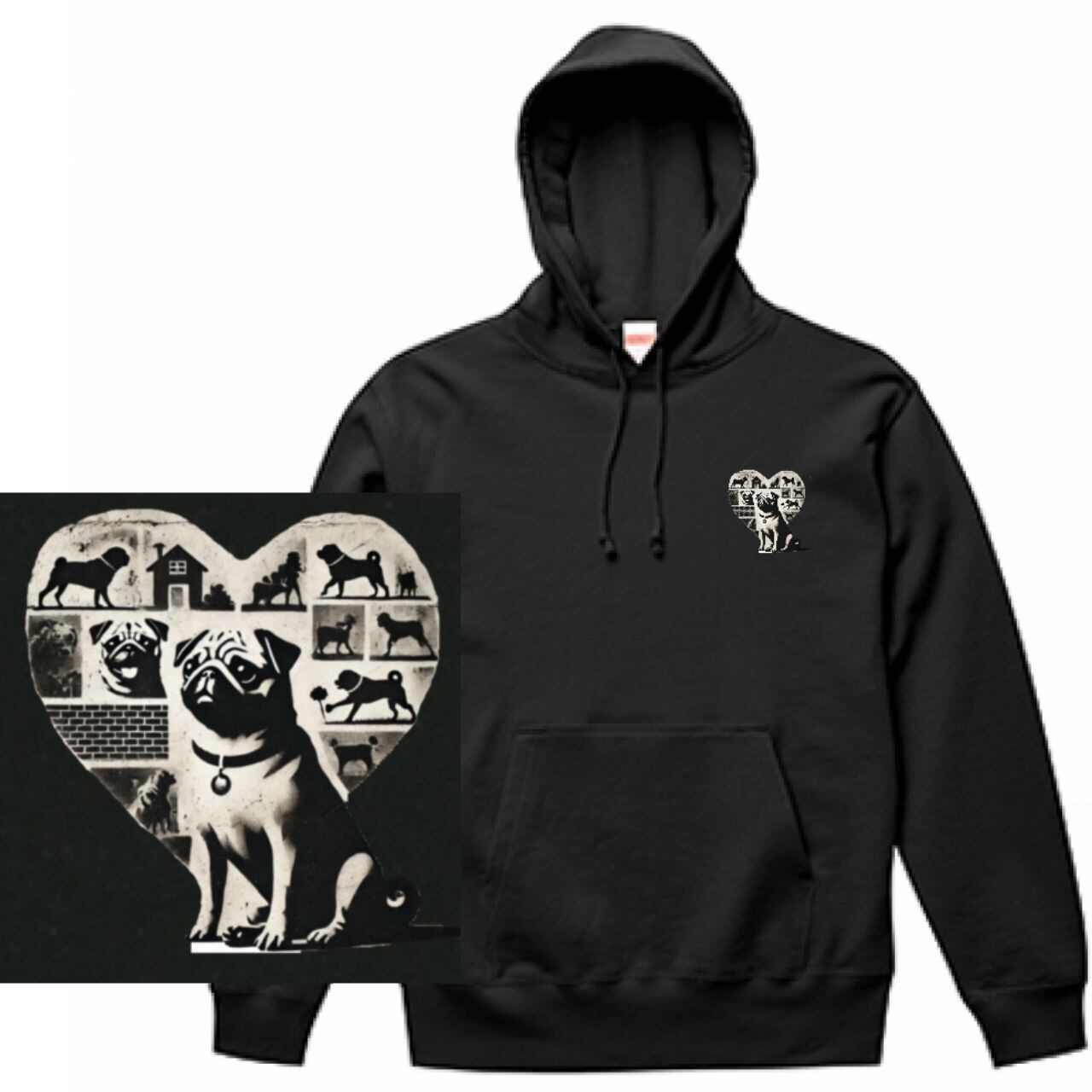 【商品詳細】 楽しい思い出をいっぱい胸に詰め込んだパグさんがクールなパーカーです。 肌触りが良いパイル裏地のスウェット生地を使用したUnited Athleのプルオーバーパーカー。 10オンスと程よい厚さで、フードは二重生地のしっかりした作りになっています。 ※画像は、イメージ画像です。 【素材】 綿100% 10oz(オンス) 【サイズ】 S 胸囲:104cm 肩幅:44cm 袖丈:56cm 着丈:63cm M 胸囲:110cm 肩幅:48cm 袖丈:60cm 着丈:67cm L 胸囲:116cm 肩幅:52cm 袖丈:61cm 着丈:71cm XL 胸囲:126cm 肩幅:55cm 袖丈:62cm 着丈:76cm 2XL 胸囲:136cm 肩幅:58cm 袖丈:63cm 着丈:81cm 3XL 胸囲:146cm 肩幅:61cm 袖丈:64cm 着丈:84cm 【お届けについて】 こちらの商品は、受注生産の為、 ご入金から約3週間程でお届け致します。 ◼️注意事項 ・タイミングによっては 商品在庫切れにより 注文キャンセルとさせていただく恐れもございますので、予めご了承くださいませ。 ・仕入れ工場を変えることがあるため、記載サイズと若干異なる場合がございます。 ・商品の色味は、お手持ちのスマートフォンの画面によって実物と若干異なる場合がございます。 ・イメージ違いやサイズ交換等、お客さまご都合による交換、返品は対応出来かねます。 ———————————— ご購入前にこちらをお読みください →https://mochitto7.base.shop/about ————————————
